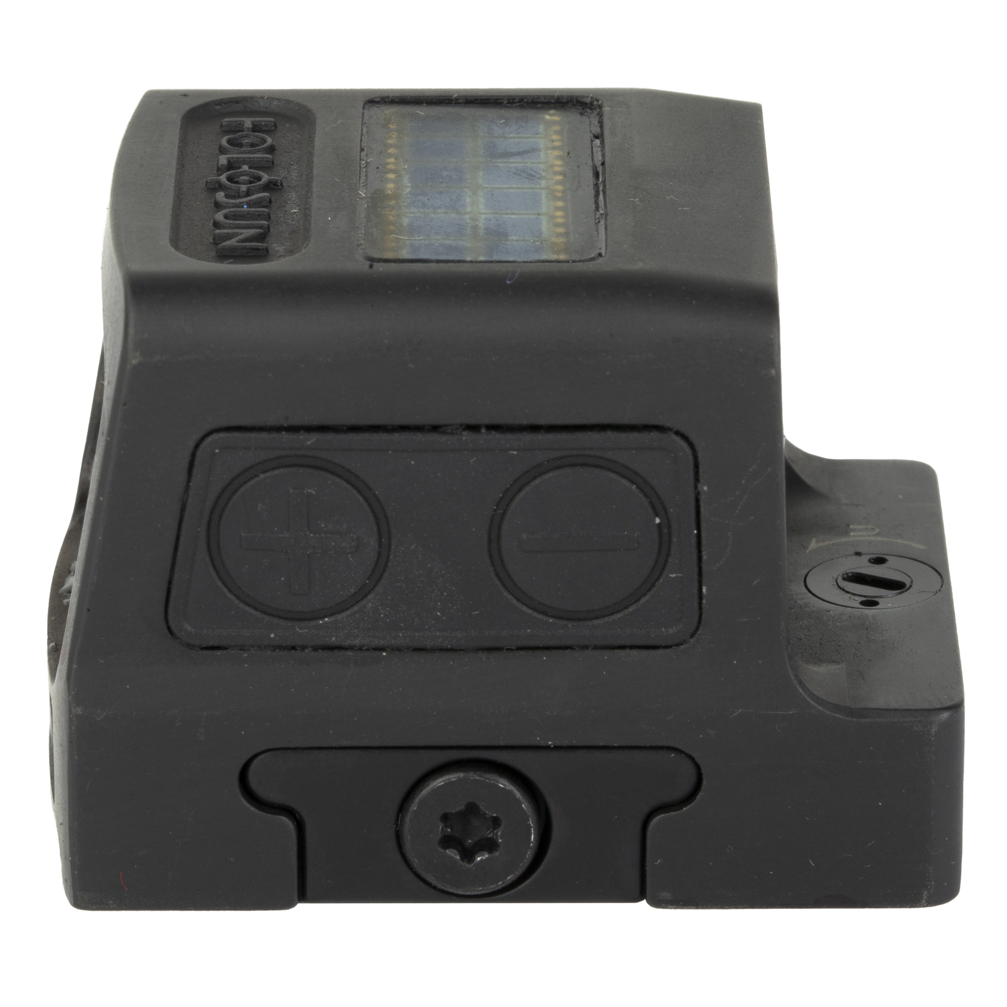 - CR1632 battery port does not require removal of optic from firearm