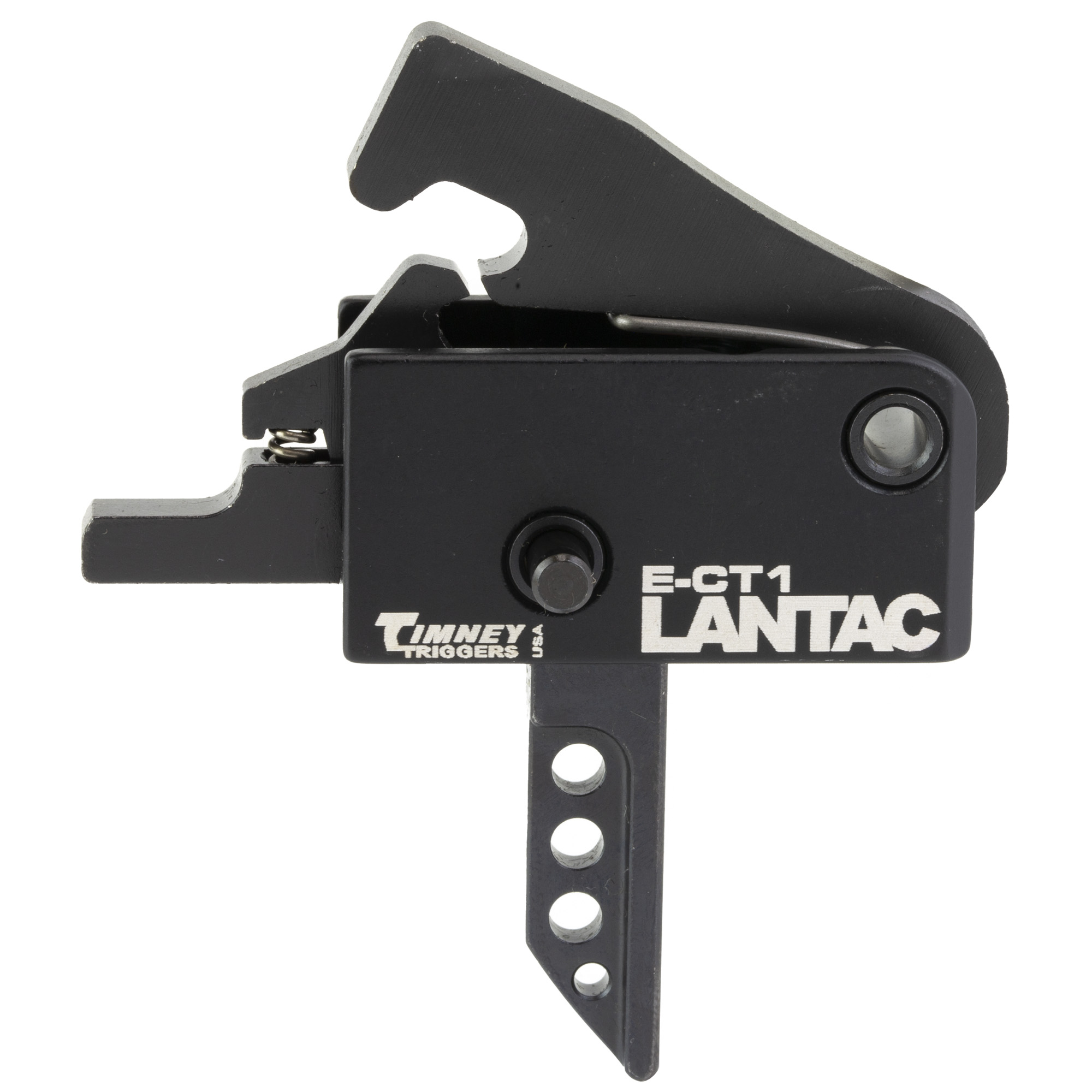 Advanced performance meets precision machining and ultra slick styling in the shape of the new E-CT1 Single Stage Trigger from LANTAC. Available in both Hybrid Curve & Flat Bow designs to suit any shooters preference. The trigger features massive improvements over the original with entirely different sear engagement surfaces that remove creep and deliver a super crisp break. Radically different internal geometry also creates insanely short reset and near non existent over travel that will greatly decrease split times and give you a big advantage over the competition. The Hammer, Trigger & Disconnector are precision machined from S7 tool steel with a proprietary sear manufacturing process that yields an incredibly smooth engagement surface and all parts are then case hardened before Black Oxide finish. The CNC machined Aluminum cassette has adjustment set screws built in that allows the user to set perfect pin tension and the trigger can be installed with standard pins or the threaded screw types seen in previous designs. The cassette is Type 3 Hard Coat Anodized Class2 Black and then Laser engraved for identification.