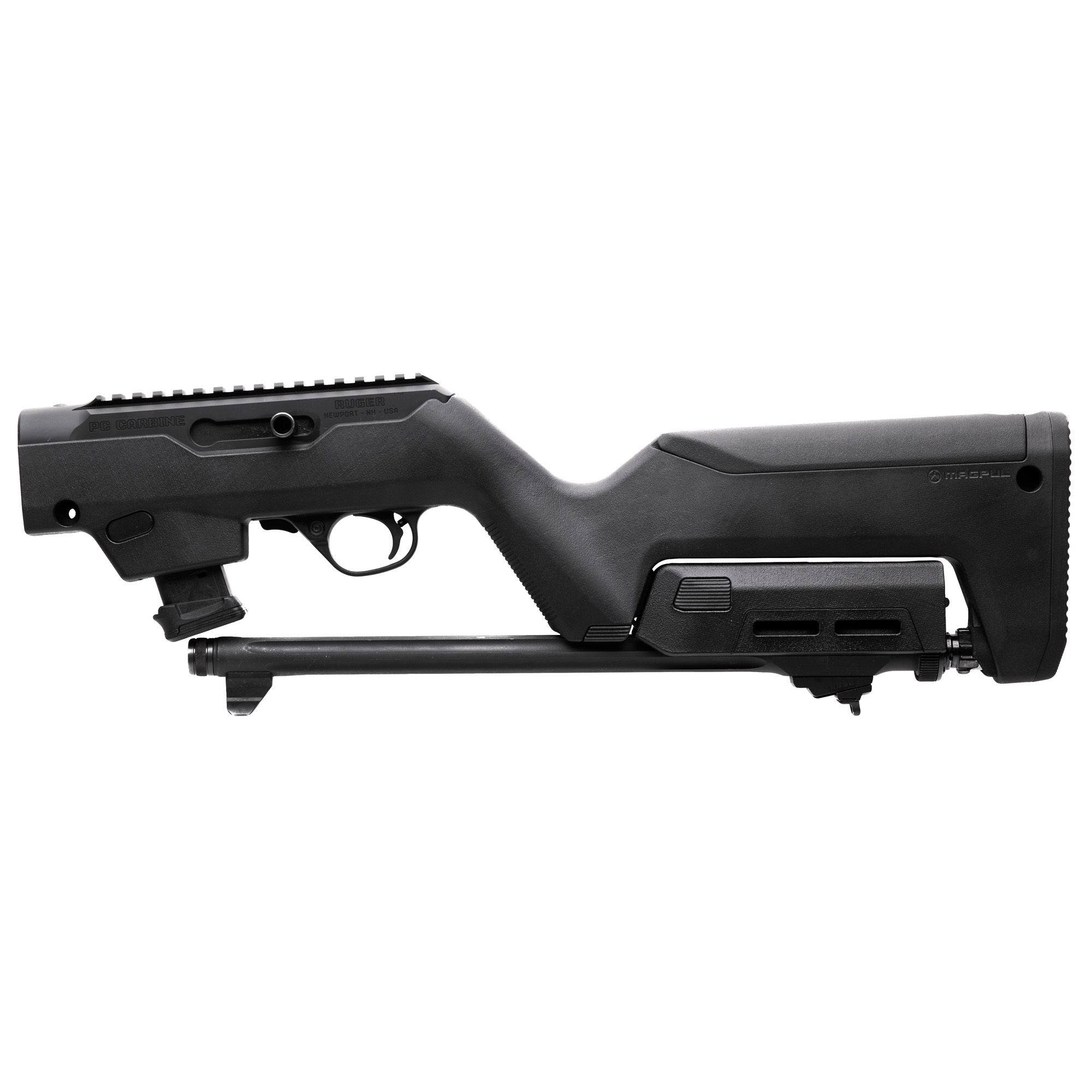 The Magpul PC Backpacker Stock for the Ruger PC Carbine is the ultimate option for those wanting to bring advanced ergonomics and portability to their Ruger PC Carbine rifle. With a similar look and functionality as The X-22 Backpacker stock, it offers a minimalist solution for the hunter or outdoorsman and was designed for those who want to transport their carbine in an efficient, convenient package without compromising shooting performance or ease of deployment. The PC Backpacker is constructed of Magpul’s advanced polymer, featuring an ergonomic hand guard with M-LOK slots at the 3 & 9 o’clock positions and interchangeable cheek risers to accommodate for various sighting options. The PC Backpacker stock also features an MOE SL rubber butt-pad offering an anti-slip surface that increases impact protection and is compatible with the MOE SL Enhanced Rubber Butt-Pad for an additional 3/8″” LOP. Using a unique locking interface that attaches the barrel assembly to the receiver, the PC Backpacker provides an efficient solution for storage during transportation while maintaining convenient assembly from the stowed position. By including multiple QD cup mounting locations, Magpul has made it easy to carry your Ruger PC Carbine in either the broken down or assembled state with the Magpul Sling Mount Kit-Type 1 & Type 2. They’ve also integrated two convenient storage locations. The first is a water-resistant grip storage compartment that provides an at-hand location for a small multi-tool, survival equipment, or cleaning equipment. The second is a compartment in the riser section that’s ideal for a single pistol magazine, fitting up to the PMAG 21 GL9.