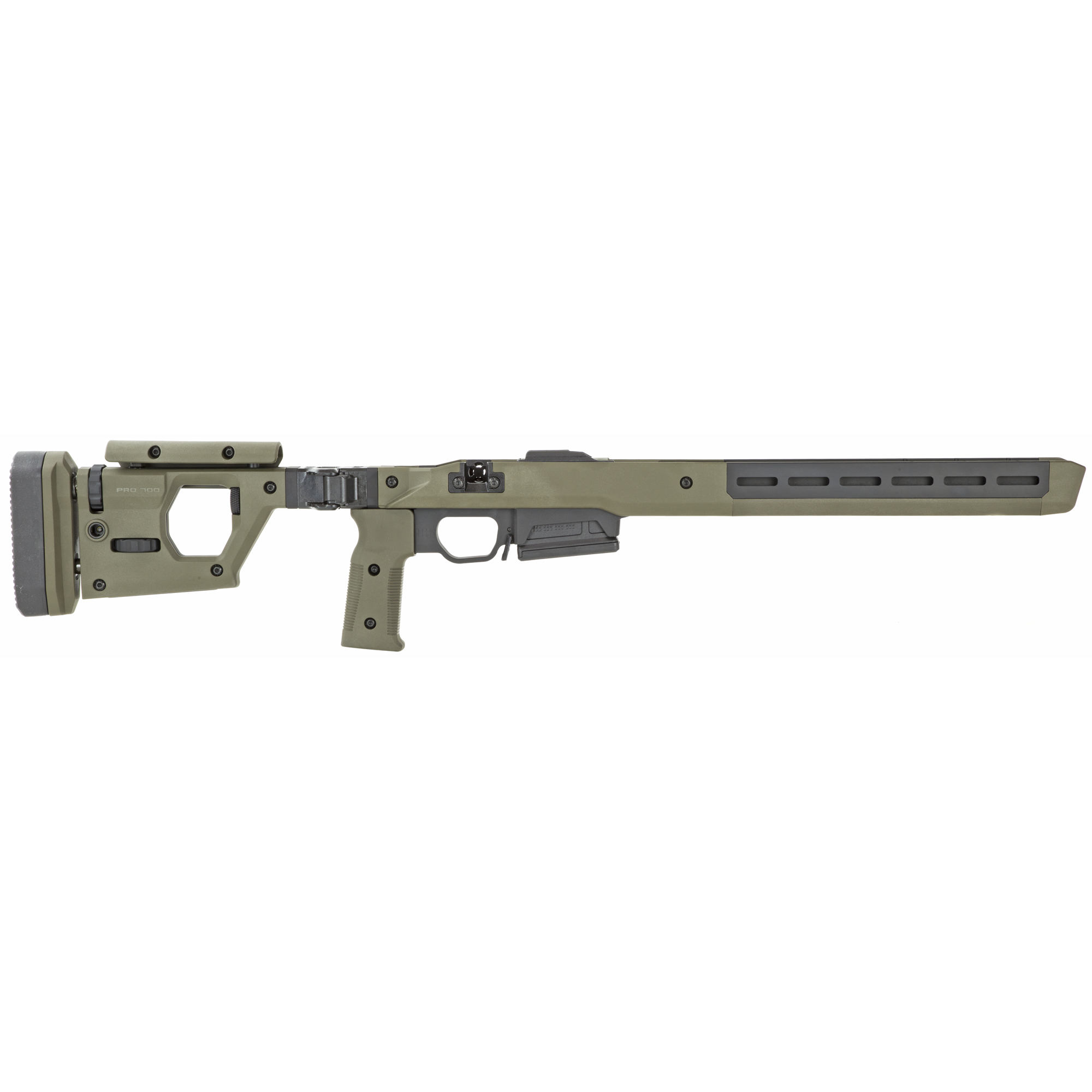 The Magpul Pro 700 rifle chassis is an uncompromising, full featured precision rifle chassis for short action Remington 700 actions and other Remington 700 footprint actions.