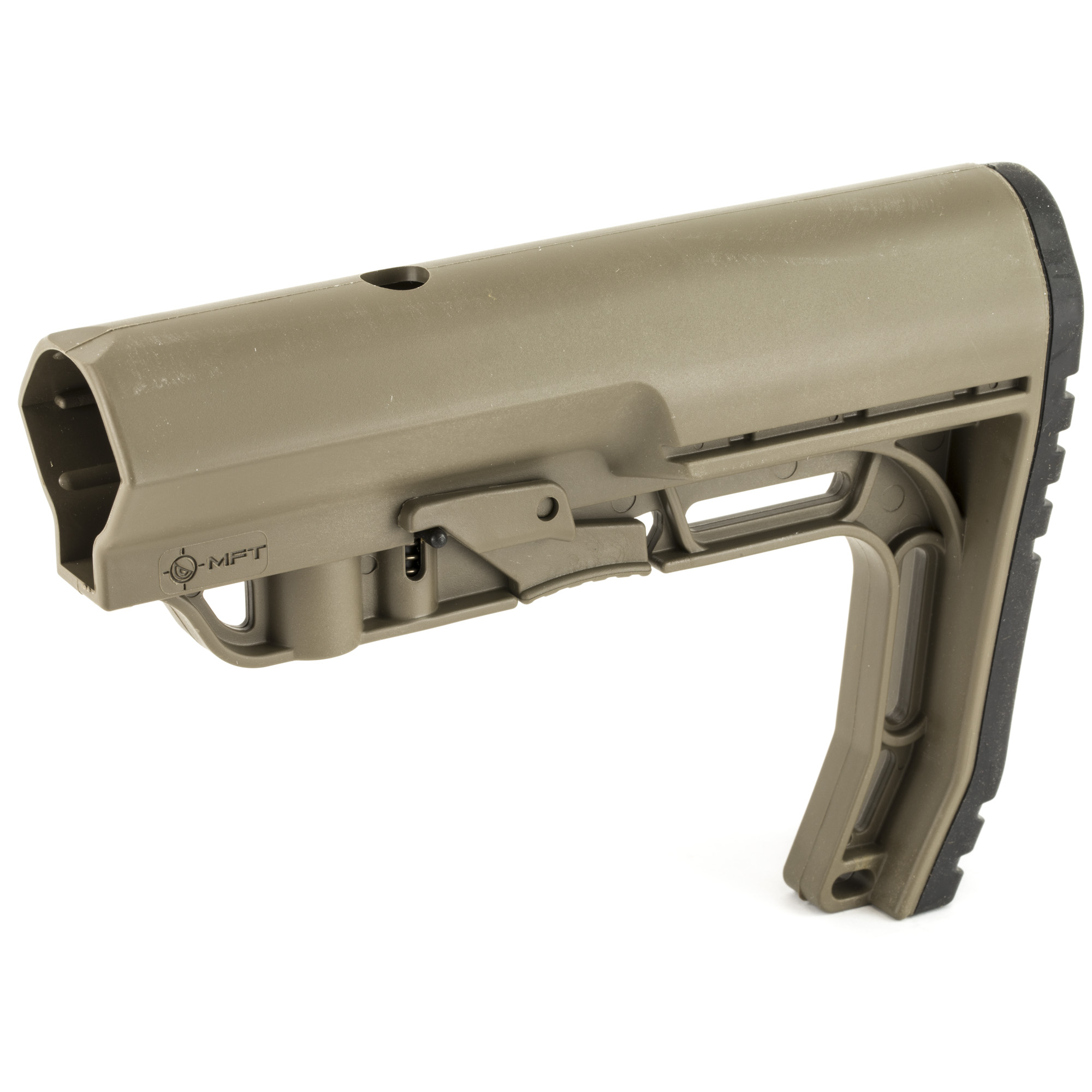 The MFT Battlelink Minimalist Stock ensures that all of the functional requirements of a rifle stock are met while keeping the overall weight under 6 ounces. It is the lightest stock of its kind in the market. Features include an angled, non-slip rubber buttpad, multiple sling mounting slots and a single bottom-mounted QD sling swivel socket. This collapsbile stock is compatible with Mil-Spec diameter carbine buffer tubes.
