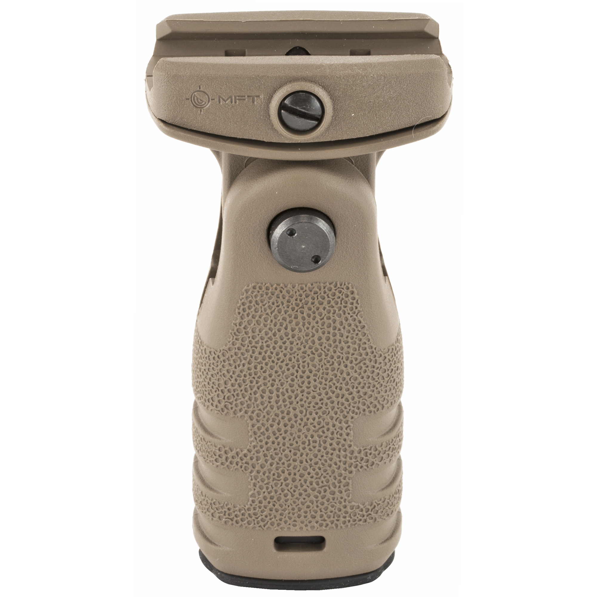 A textured vertical grip that deploys in either a vertical or horizontal position and provides a positive grip surface. Allows the support hand to apply rearward pressure keeping the weapon shouldered, yielding better muzzle control and accuracy.