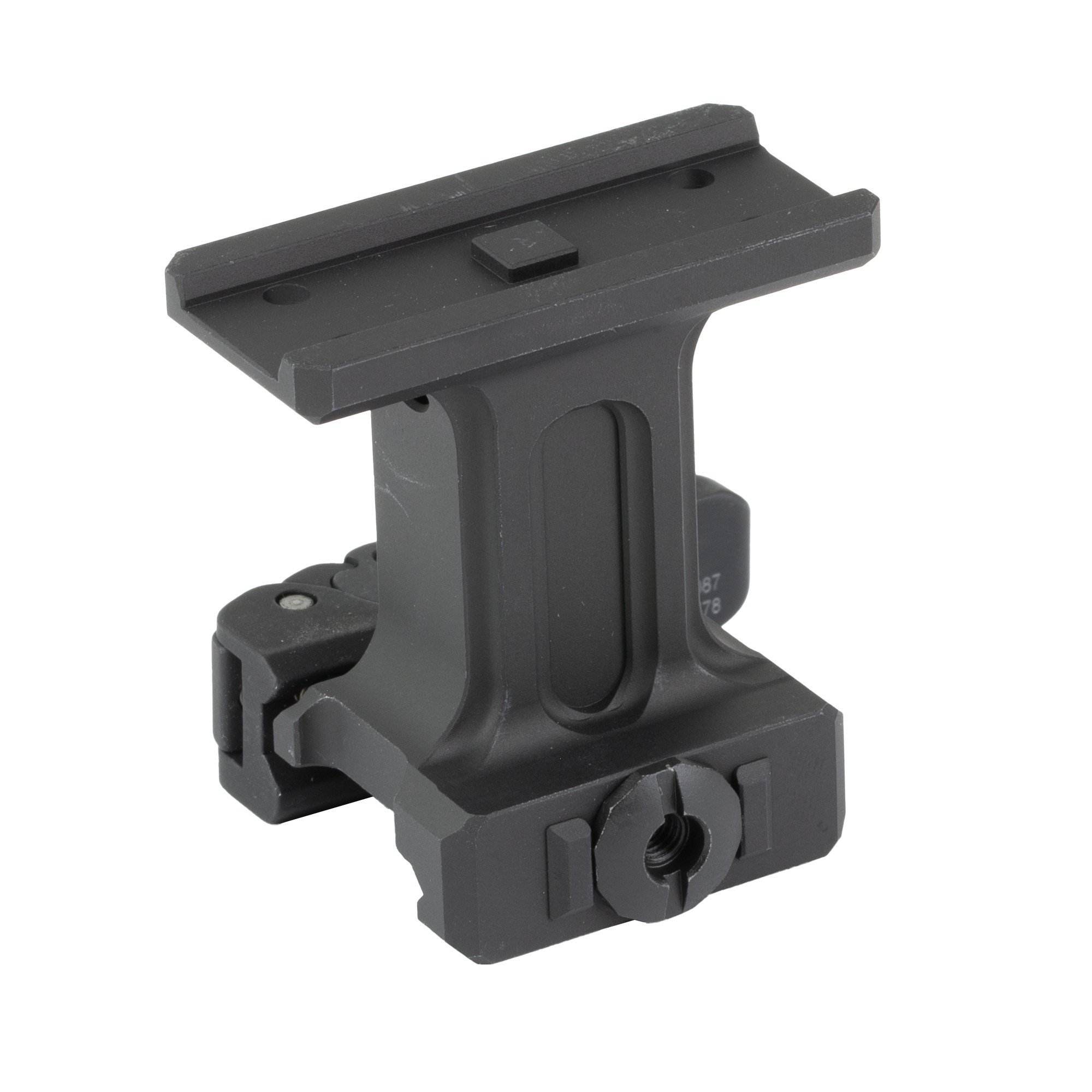 The Midwest Industries Aimpoint T1/T2 QD mount features superior clamping that won’t damage or mar the rail surface. It operates very smoothly, with a multi-faceted adjustment nut to achieve the exact tension needed by the user. Fully adjustable without tools, it can fit rails that are not machined to mil-spec tolerances. It also has the smoothest functioning QD lever on the market, patented by Elite Defense.