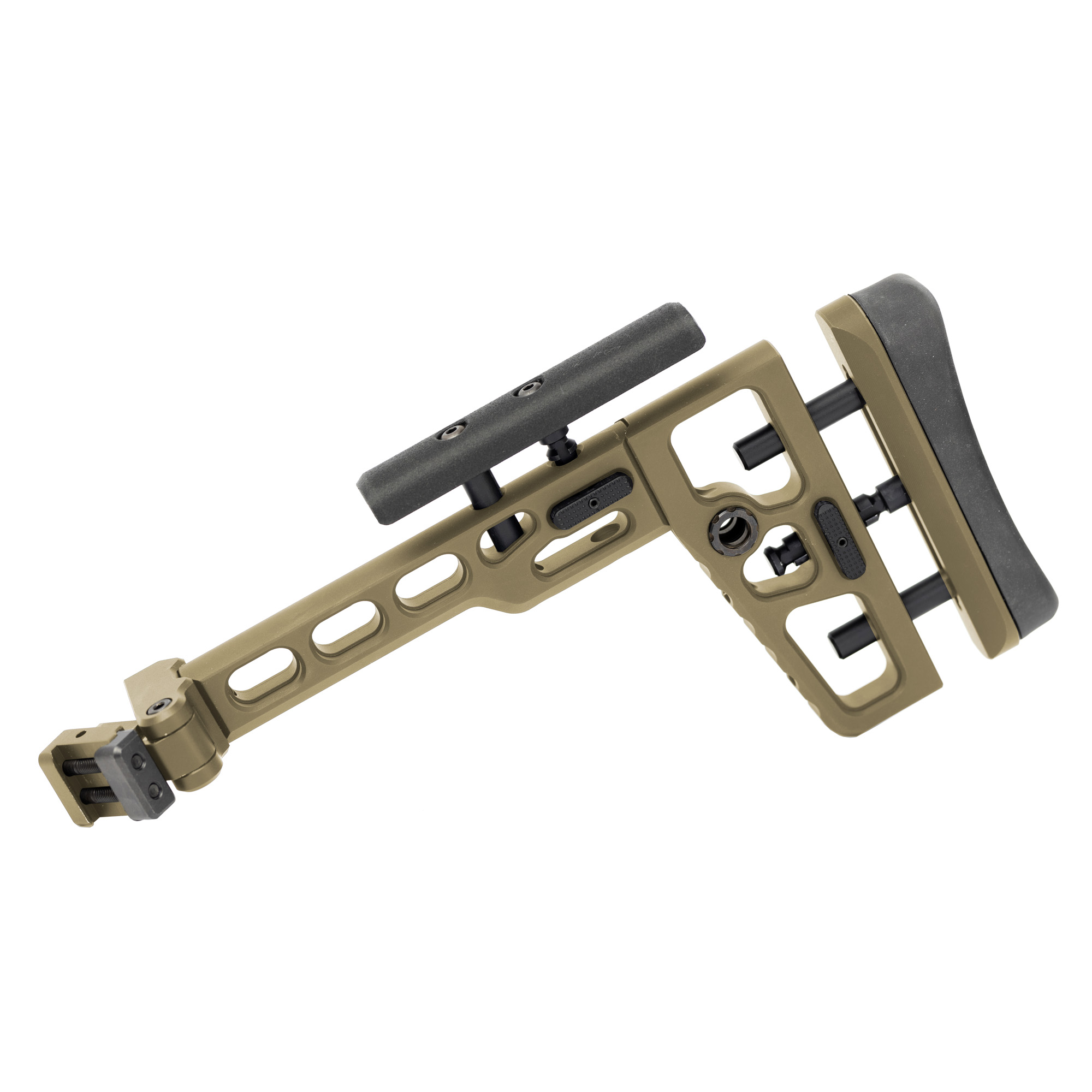 - Designed not to obstruct trigger guard and safety selector when folded