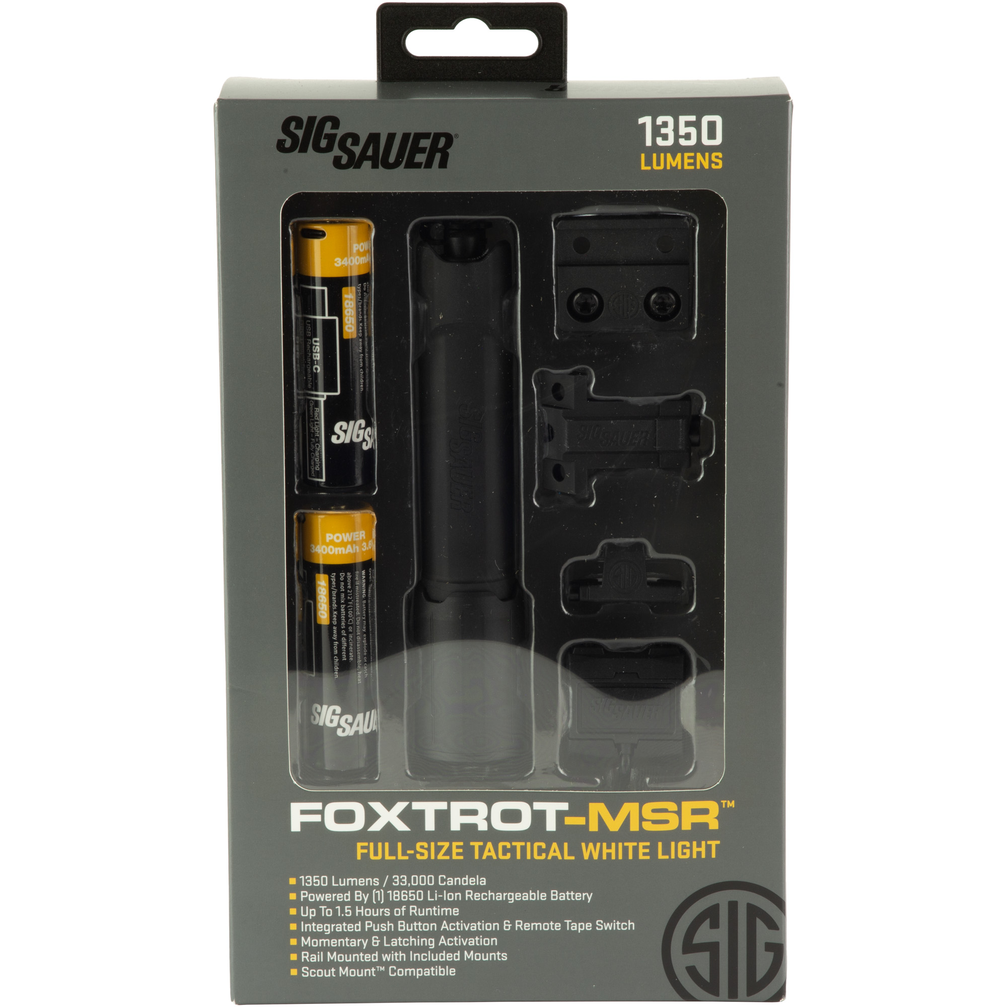 Introducing SIG SAUER’S new FOXTROT-MSR F weapon-mounted white light. Boasting 1350 Lumens and 35,000 Candela, the FOXTROT-MSR F produces a bright yet focused beam capable of meeting the needs of tactical professionals and firearm enthusiasts alike.