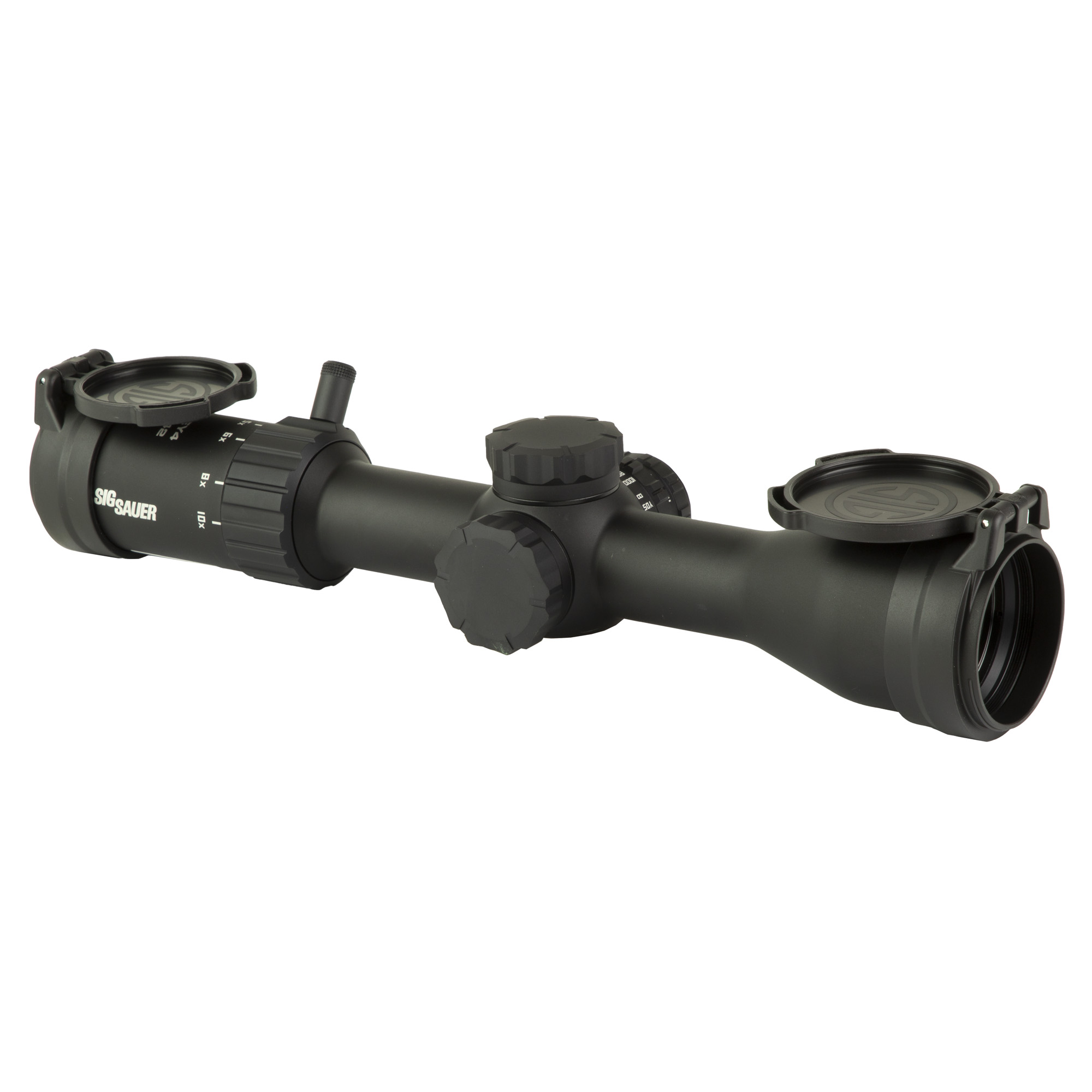 Building on SIG SAUER’s tradition of innovative hunting optics, the new WHISKEY4 lineup offers the modern hunter a wide range of rugged 2.5 to 10 variable power riflescopes designed to perform reliably season after season. With quick and intuitive adjustments, including a removable magnification throw lever and locking zero-stop elevation turret, the WHISKEY4 eliminates guesswork when adrenaline is high. Capable of providing a crystal-clear image even at high magnification, this WHISKEY4 features a second focal plane, illuminated HELLFIRE QUADPLEX reticle. In addition to waterproof and fog-proof performance thanks to gas-purged lenses, each WHISKEY4 riflescope comes with factory-installed flip-back lens covers that maintain accessibility while protecting your optic.