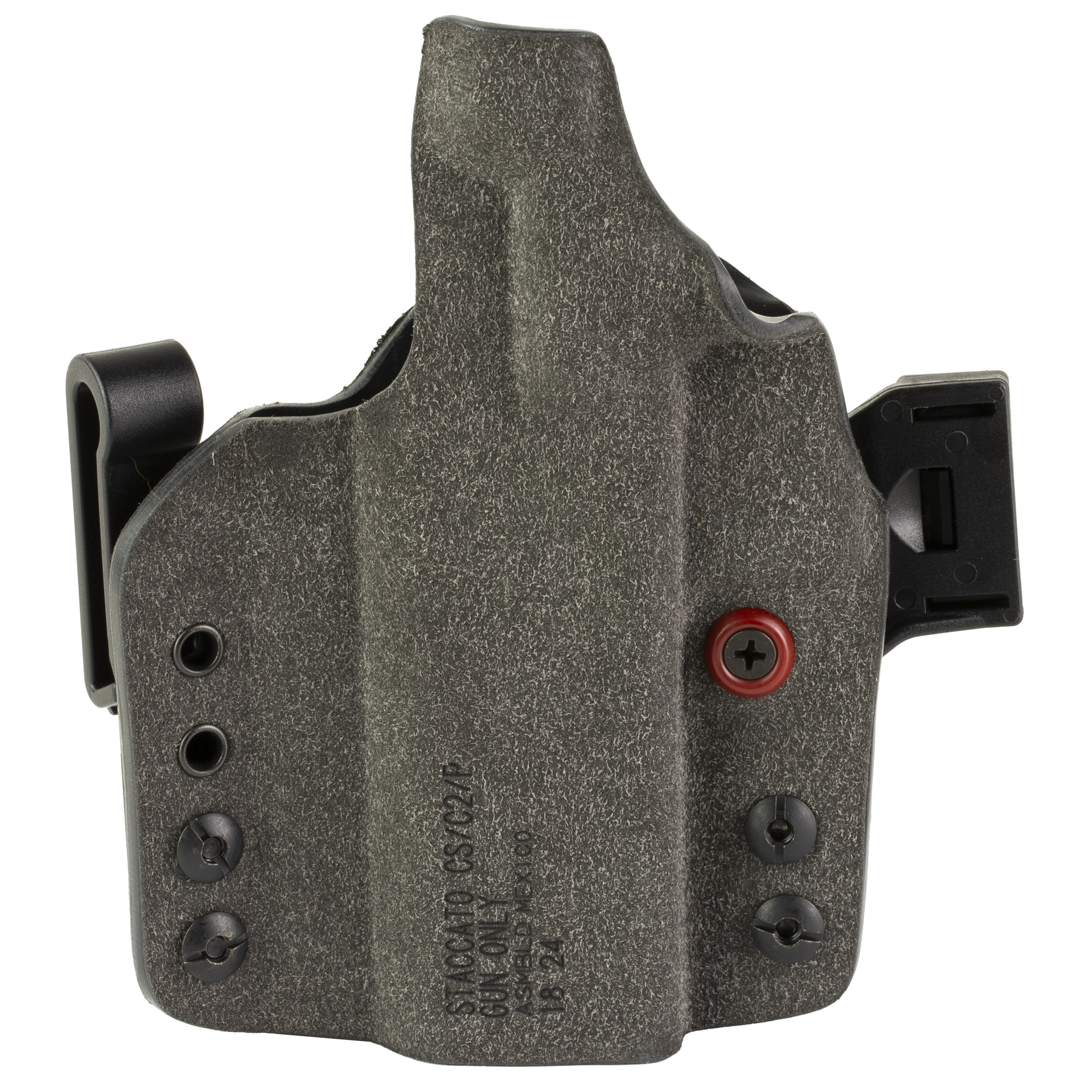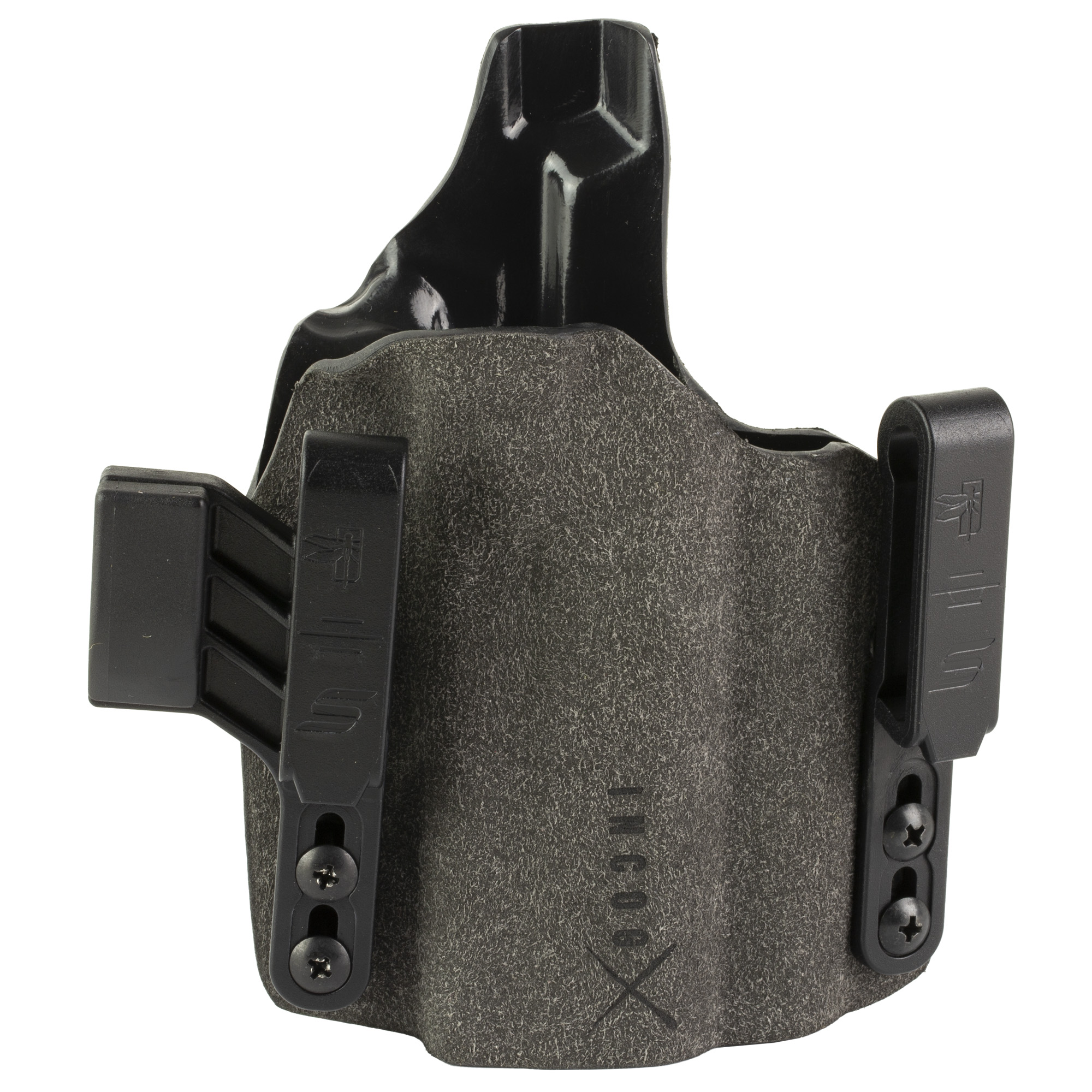 The Incog X is compatible with any Red Dot Sight (RDS) capable of being installed on the firearm manufacturer’s slide behind the ejection port (including mounting options using the firearm manufacturer’s adapter plates). They tested dozens of popular RDS models including larger optics like the Trijicon SRO. The Trijicon SRO requires a slight repositioning of the upper flat clip to eliminate minor interference, but works flawlessly after adjustment. Boltaron construction provides form fitting passive retention. Suede exterior adds extra friction for secure IWB wear. Adjustable clip positioning allows for ride-height adjustment.