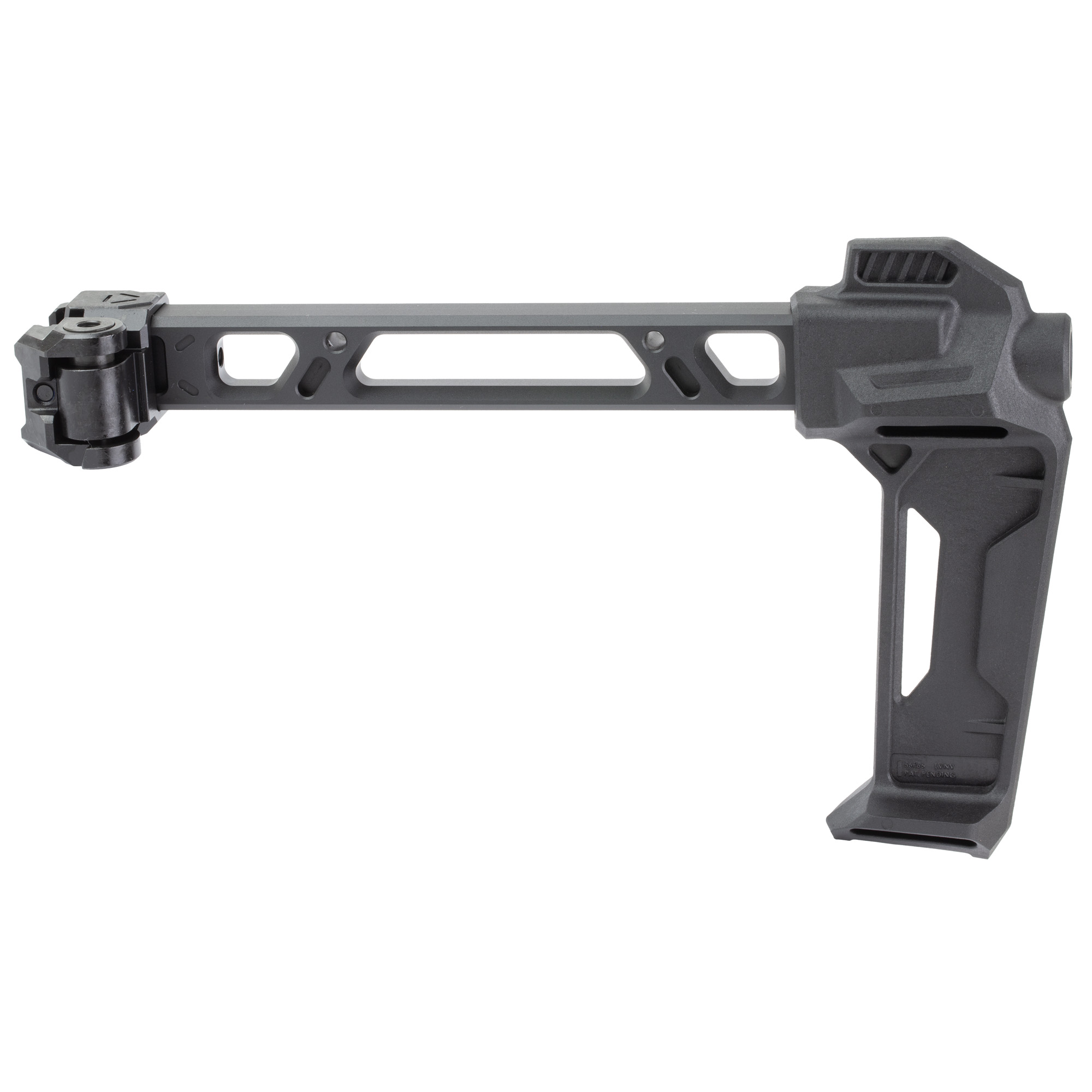 The Single Folder utilizes the same arm and modular stock/stabilizer end pieces as the Strike Dual Folding Stabilizer. What’s new is that it has a strengthened hinge made out of steel, instead of aluminum, making it extremely rigid and robust. The fitment is also perfect with little to no play when extended and folded. This folder only folds to a single side but can do so at anytime without any reconfiguration or use of a button.
