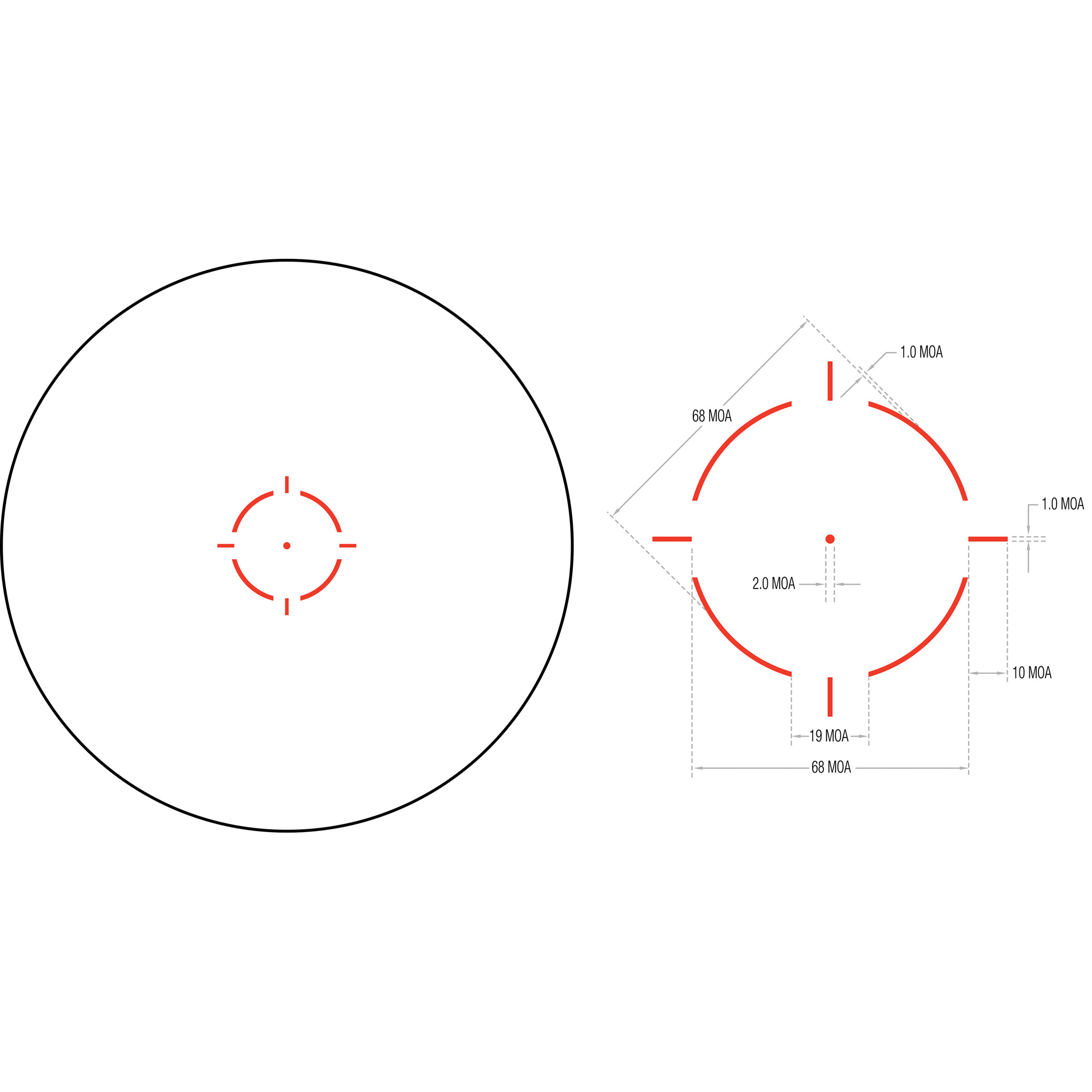 The Trijicon Miniature Rifle Optic (MRO) is a reflex-style, sealed sight intended for use on rifles, carbines, and shotguns to provide fast target acquisition. It is designed to be used with both eyes open, providing the operator with maximum situational awareness. The large aperture and tapered light path maximizes the viewing area in such a small optic, allowing for fast target engagement – especially from non-standard shooting positions. It also features ambidextrous brightness controls, sub-flush adjusters, advanced lens coatings, and a fully sealed, waterproof, hard anodized forged 7075-T6 housing, making the MRO the ultimate mini reflex sight. The MRO HD is optimized for use with a magnifier, with a re-engineered objective lens to produce a refined 2.0 MOA center dot surrounded by a 68 MOA segmented circle reticle. The ambidextrous reticle and brightness control allows the user to choose between a full reticle or center dot only.